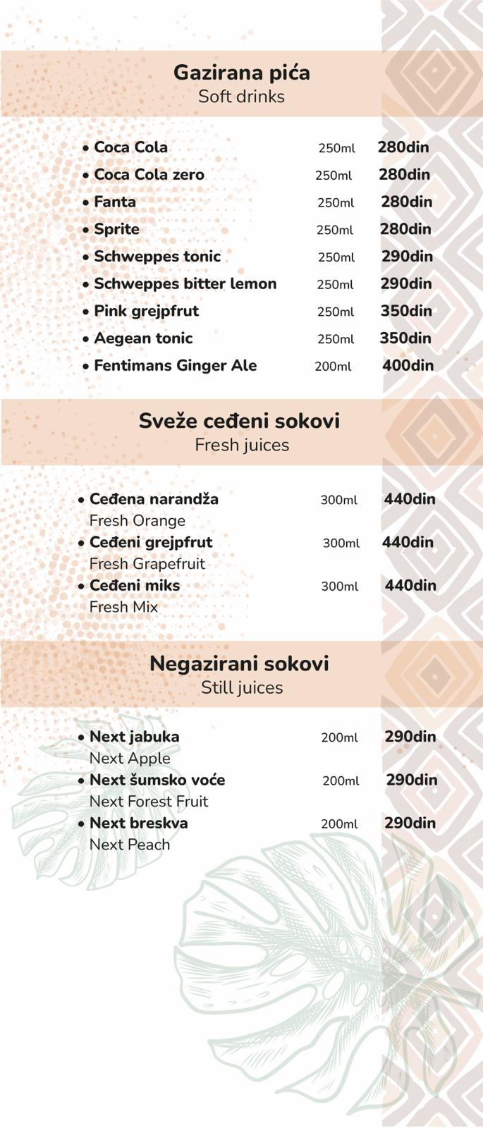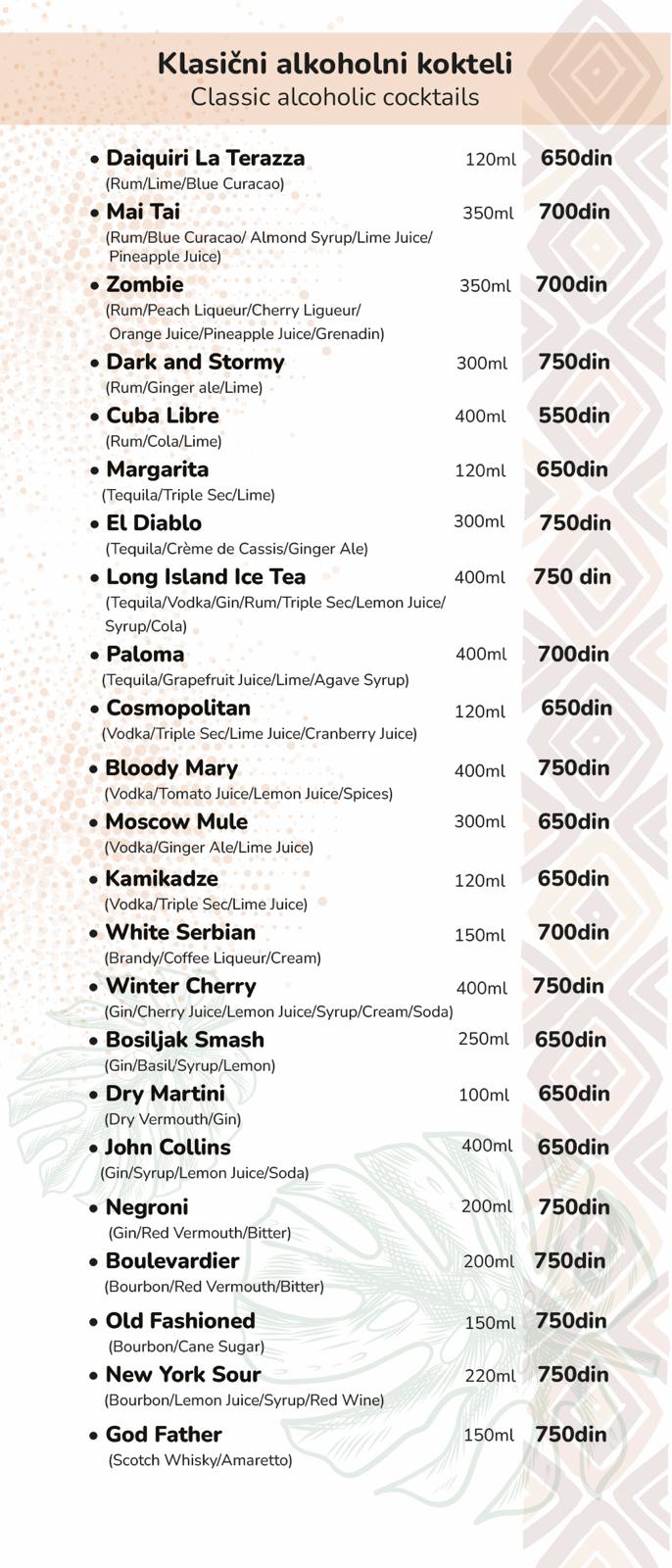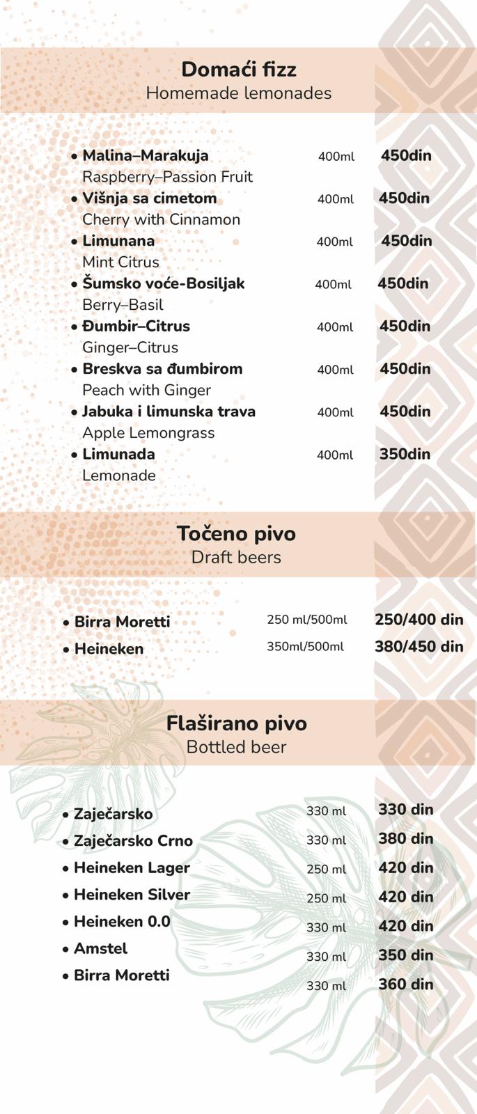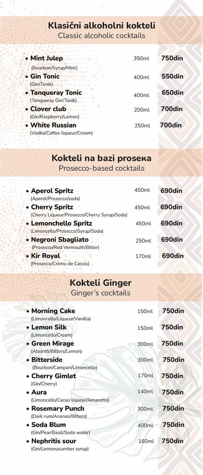 Čekaju vas ukusni kokteli, pića za svaki ukus i sveži bezalkoholni miksevi, kao i atmosfera koja vas uvlači čim pređete prag.